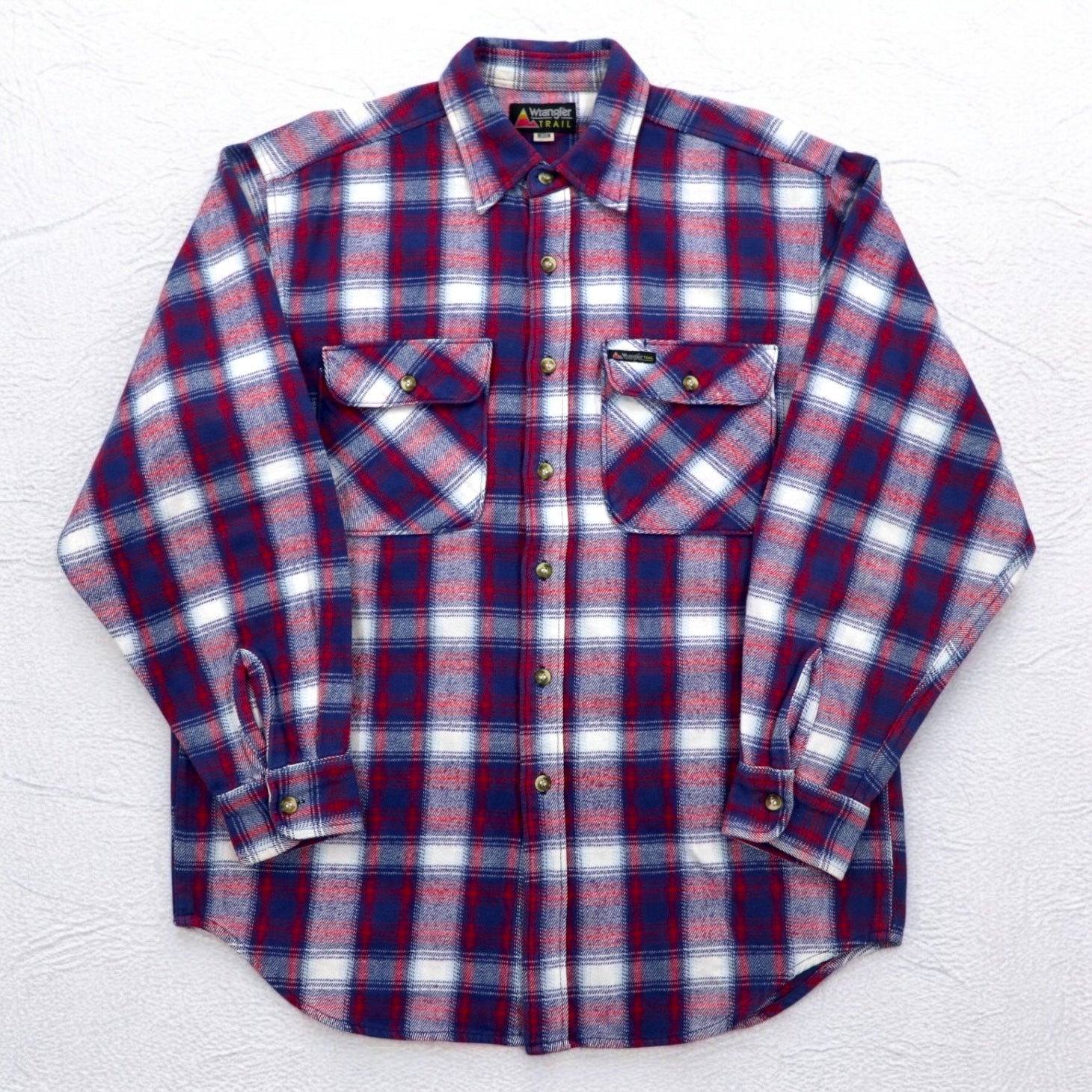 Wrangler TRAIL 90年代 フランネル ワークシャツ M ブルー チェック コットン