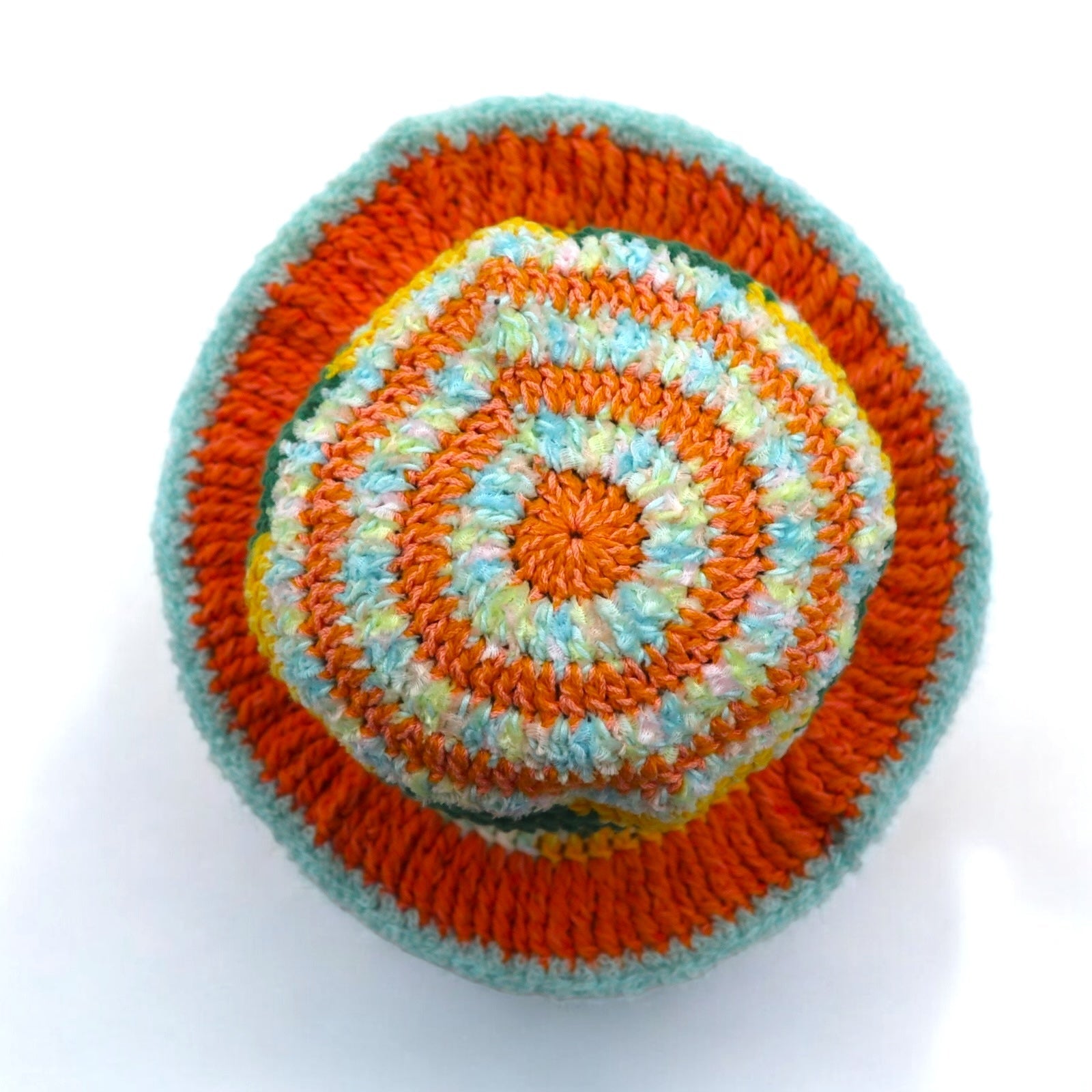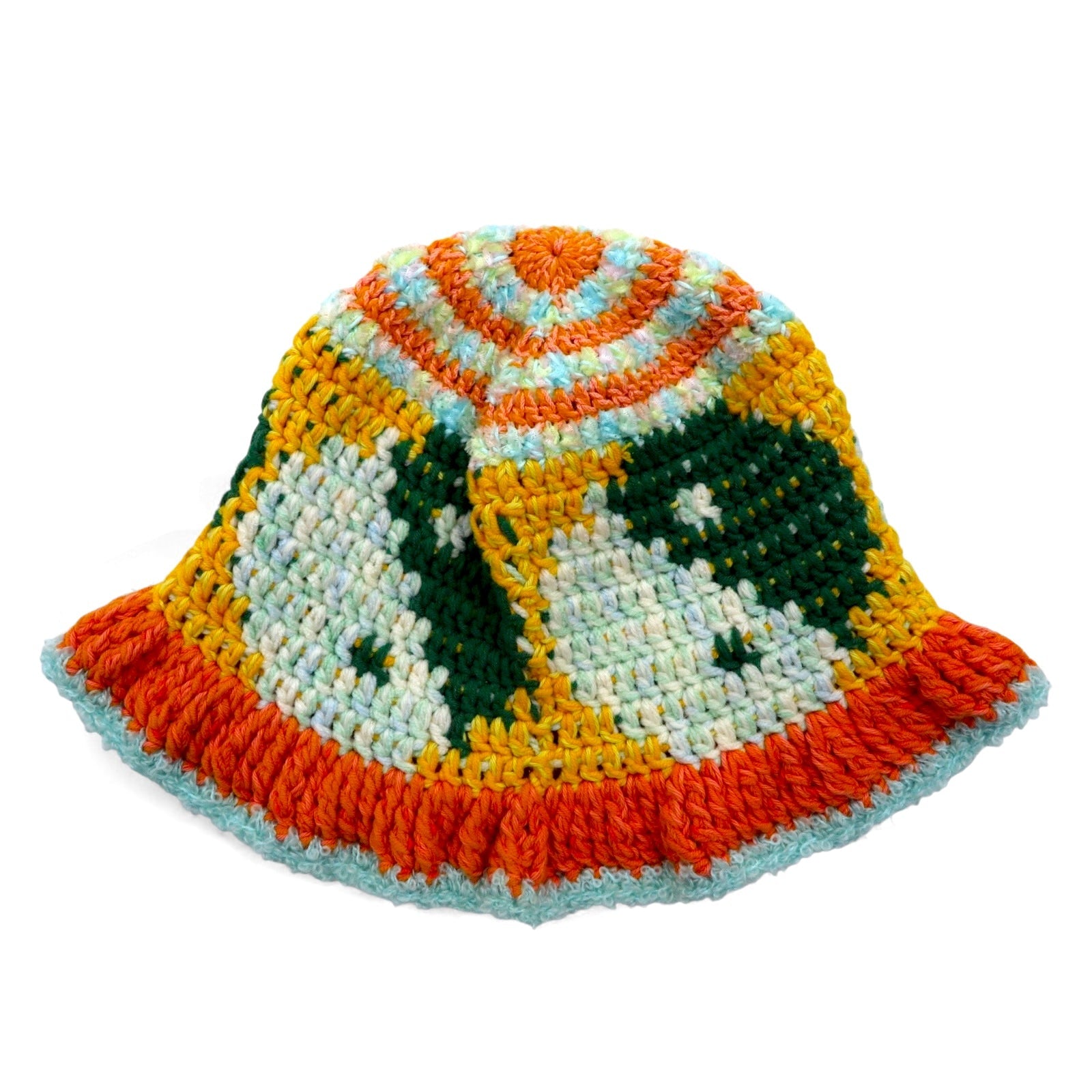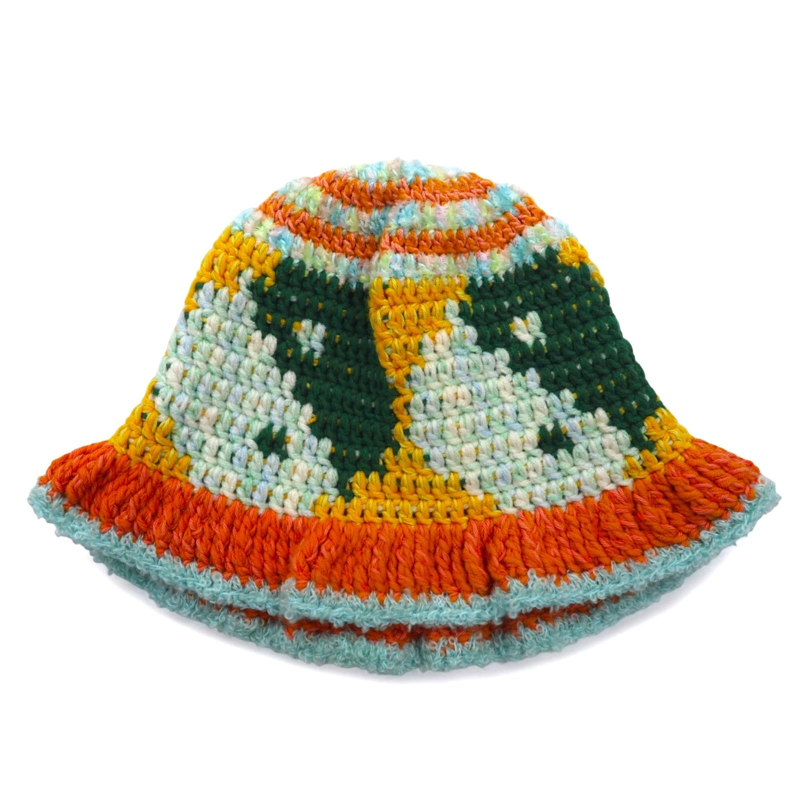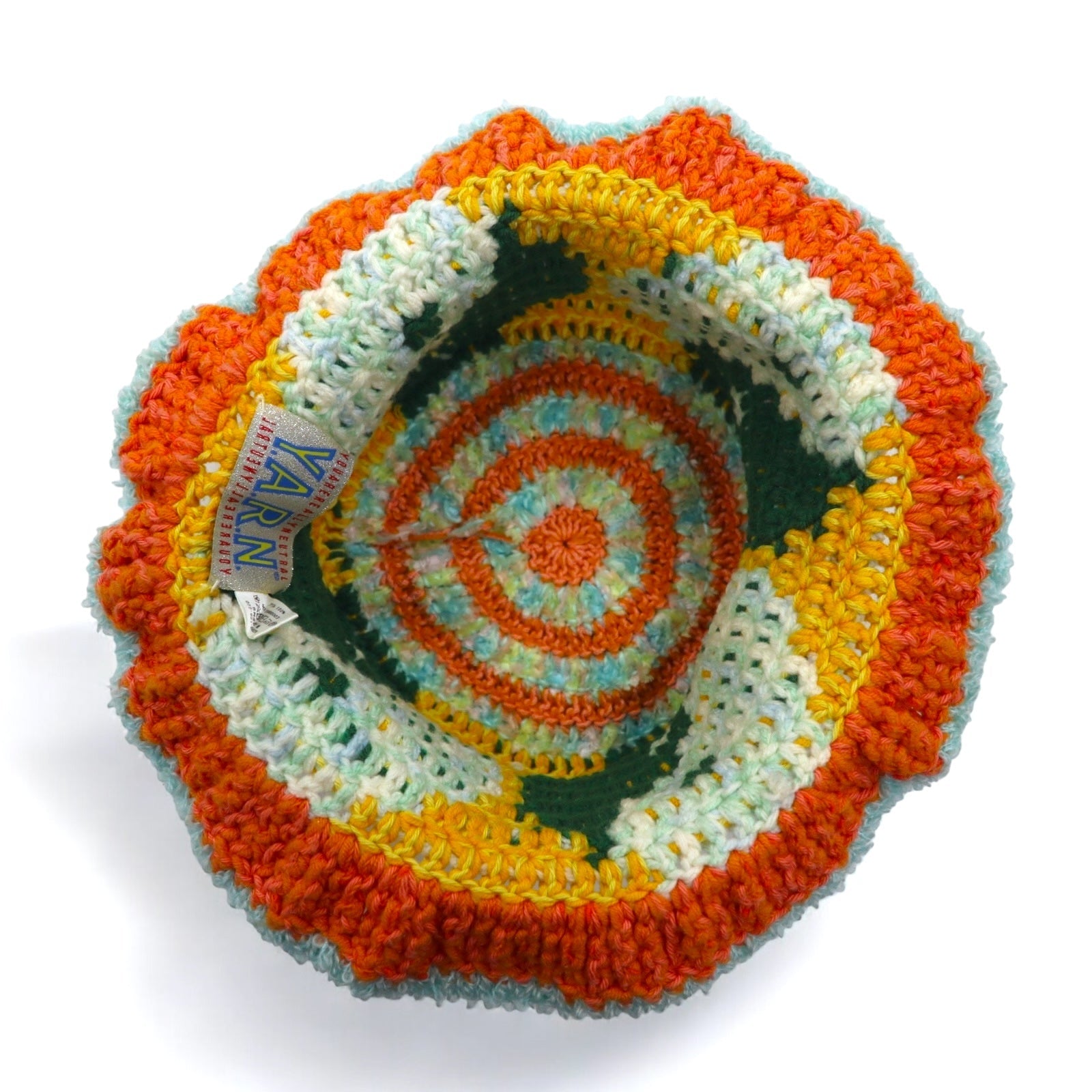 Y.A.R.N. クロシェ ハット FREE マルチカラー 総柄 オレンジ グリーン イエロー 陰陽 Yinyang Handmade