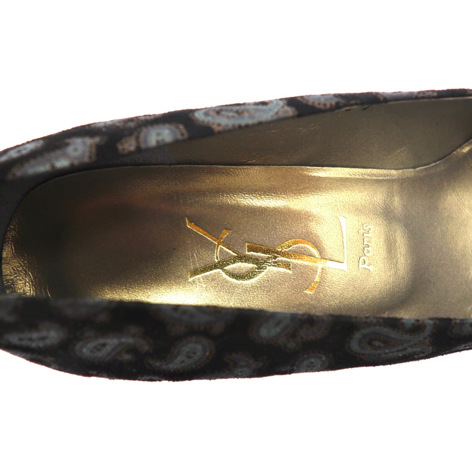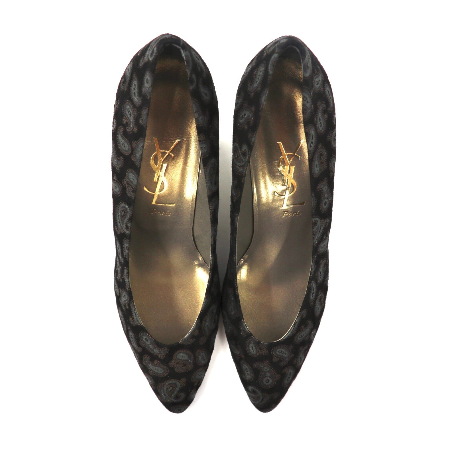 YVES SAINT LAURENT パンプス 23.5cm ブラック ペイズリー柄 オールド 未使用品