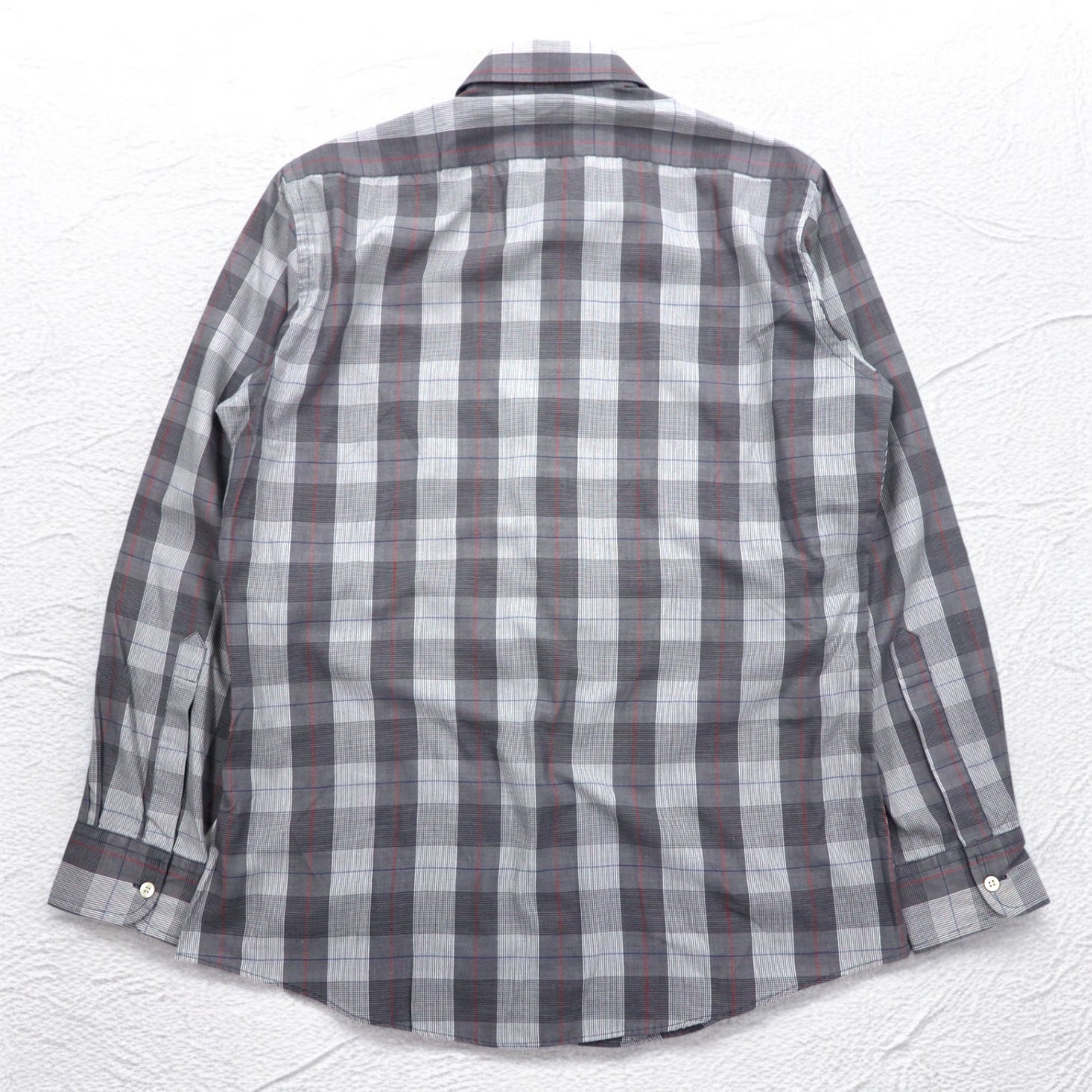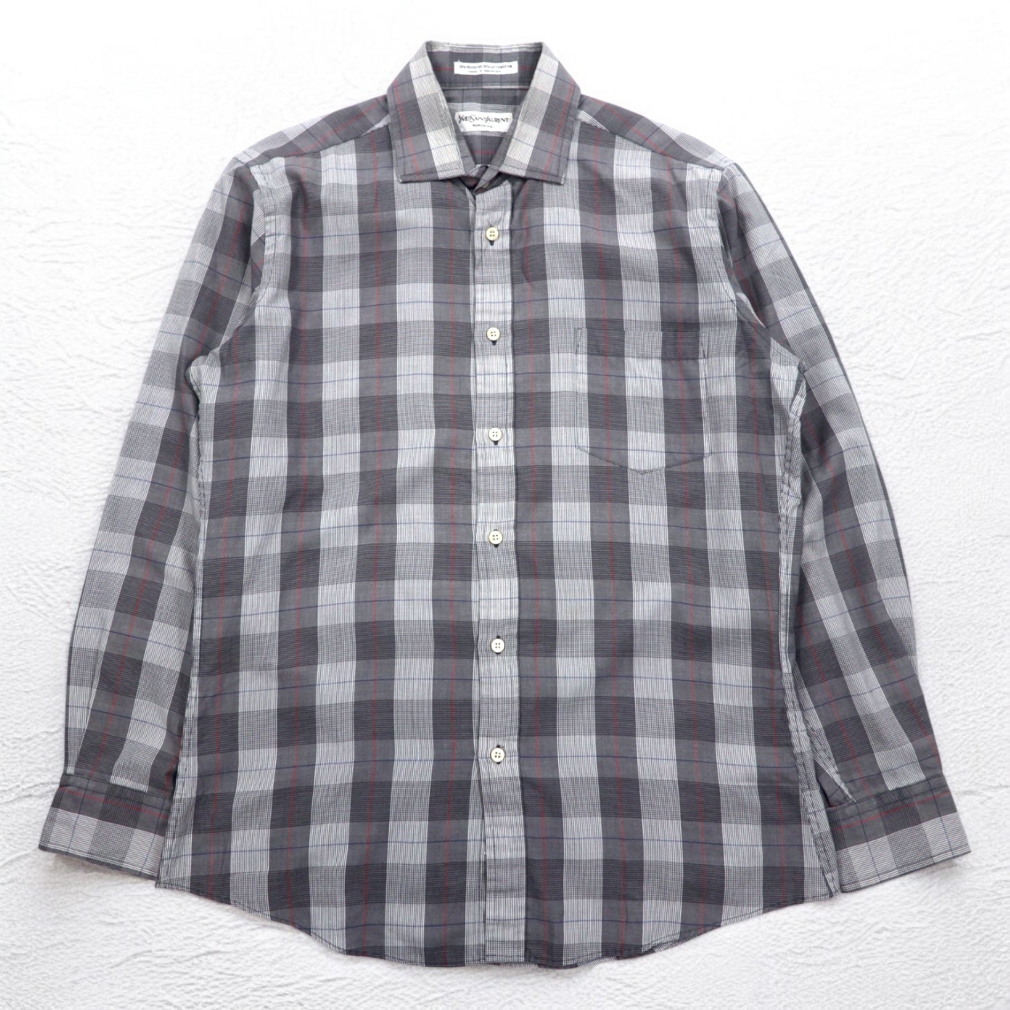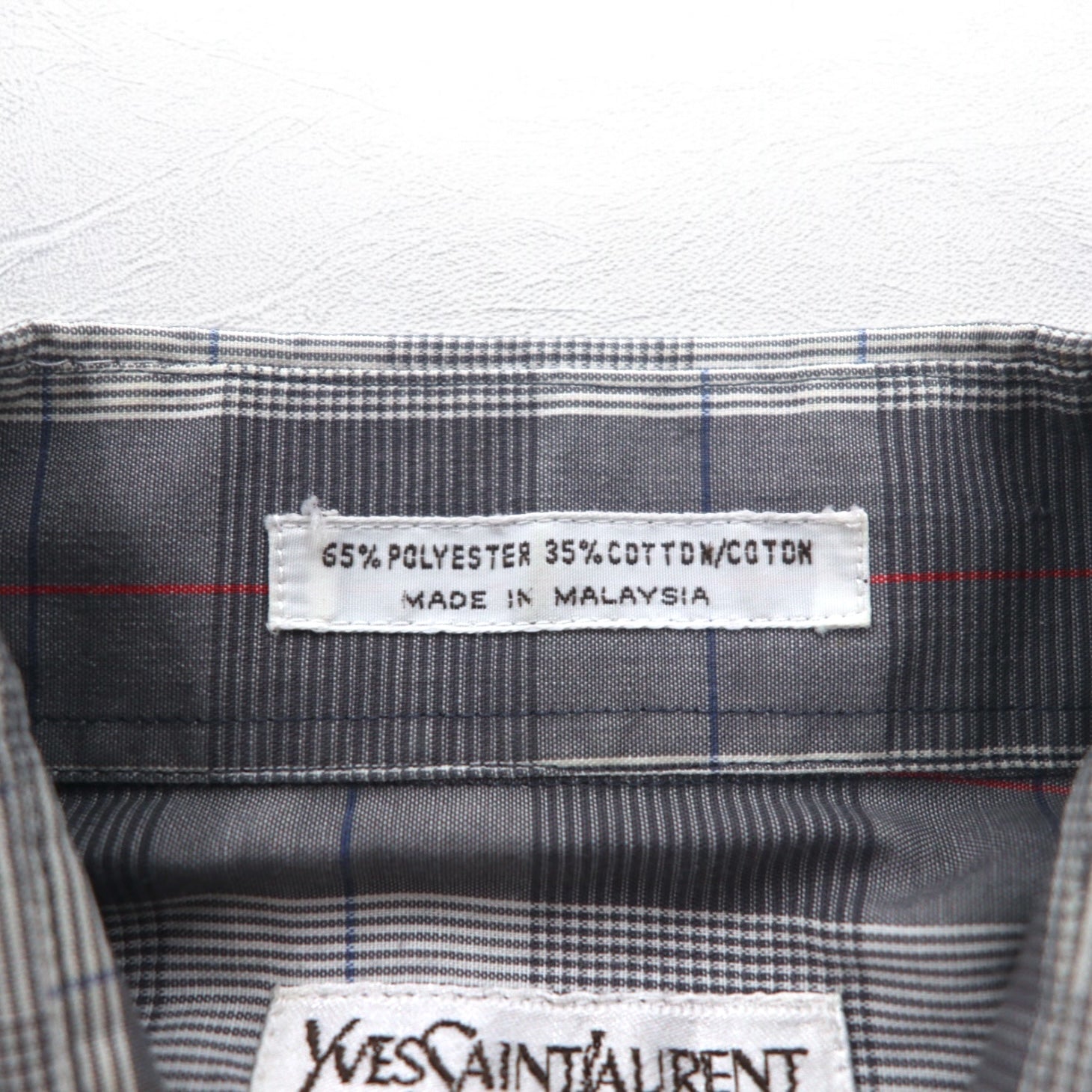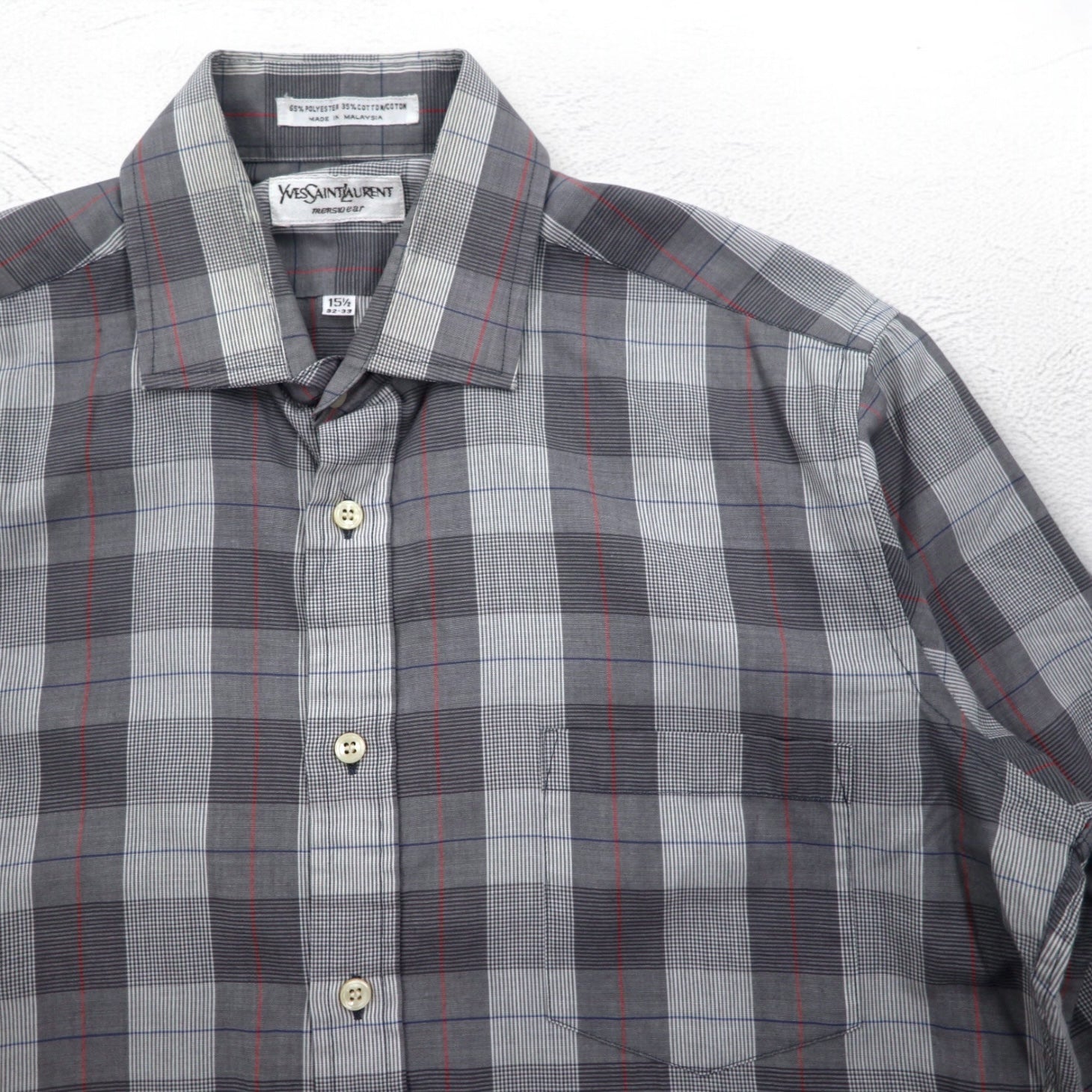 YVES SAINT LAURENT 90年代 オールド ワイドカラー シャツ M グレー チェック ポリエステル コットン