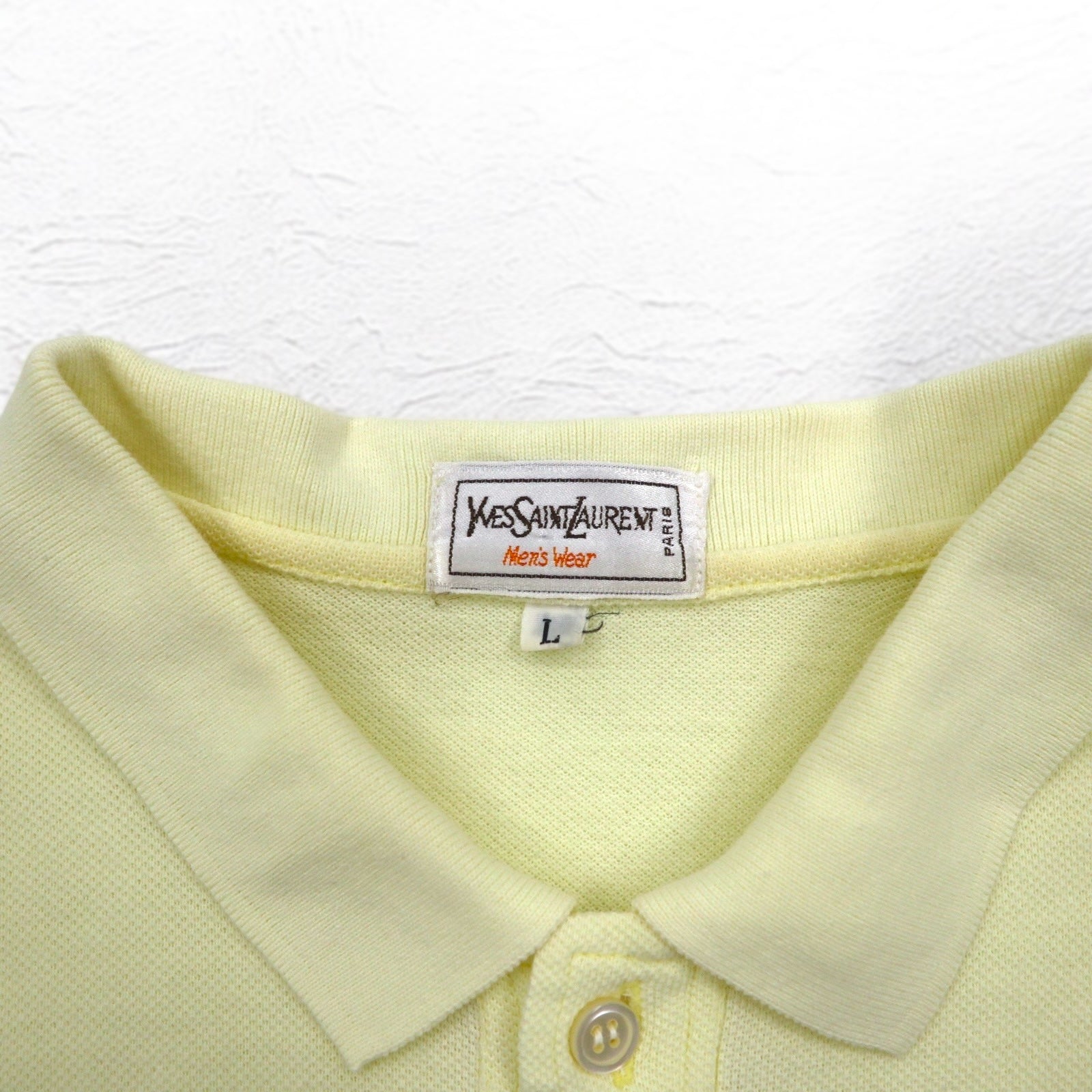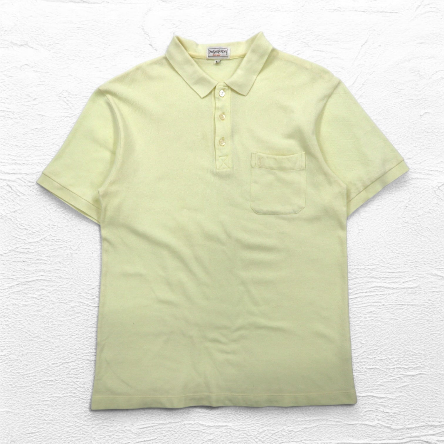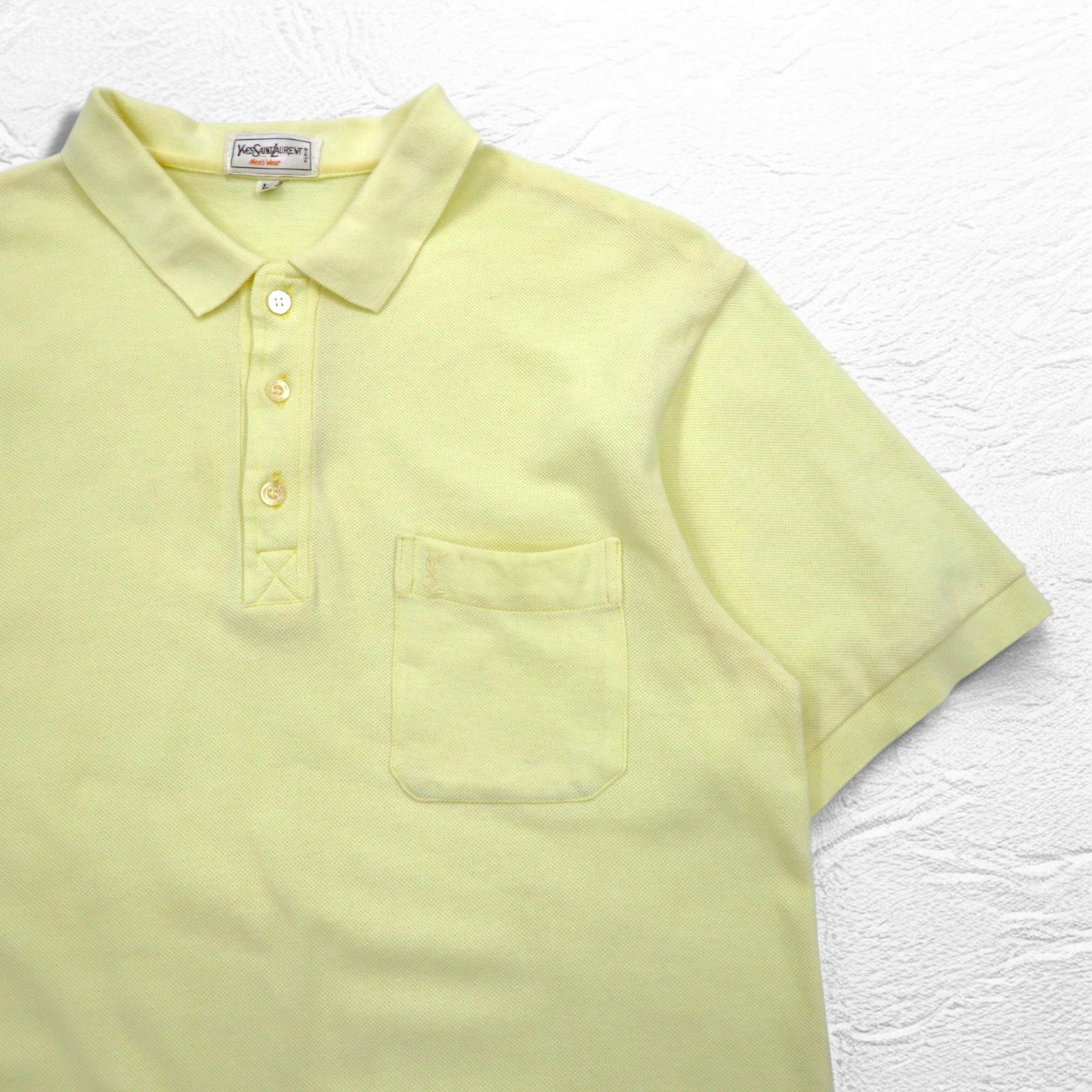 YVES SAINT LAURENT 90年代 ポロシャツ L イエロー コットン 鹿の子 YSL 胸ポケット ワンポイントロゴ刺繍